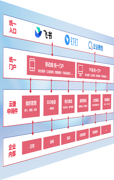 对协作平台提供支持服务,,,,支持企业应用与协作平台对接,,,包含组织同步、、消息集成、、待办集成等。。。支持目前主流的协作平台:钉钉、、、企微和飞书。。